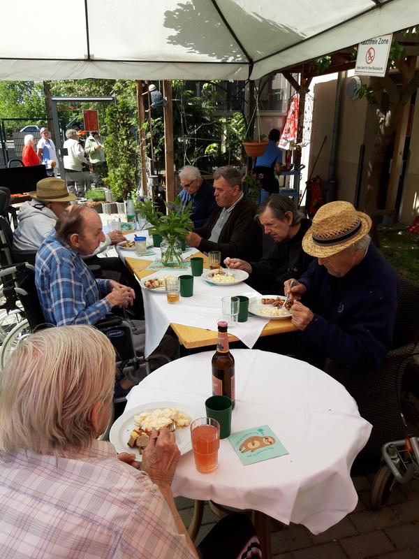 Mit einer kleinen Feier anlässlich des Männertages, wurden die Bewohner in der Seniorenresidenz »An der Rädelstraße« überrascht. Bei blauem Himmel und Sonnenschein, lecker Gegrilltem und netten Gesprächen verbrachten die Bewohner einen unterhaltsamen Nachmittag in geselliger Runde.